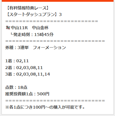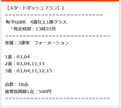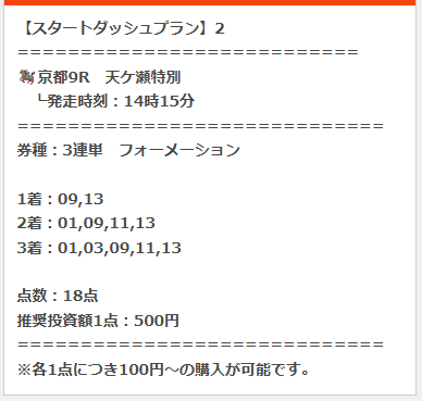 スタートダッシュプランは3鞍の提供があり3鞍的中