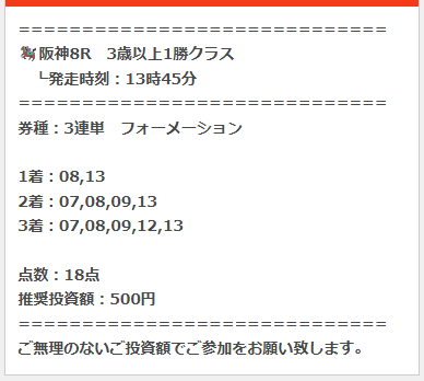 これは阪神8Rの買い目で