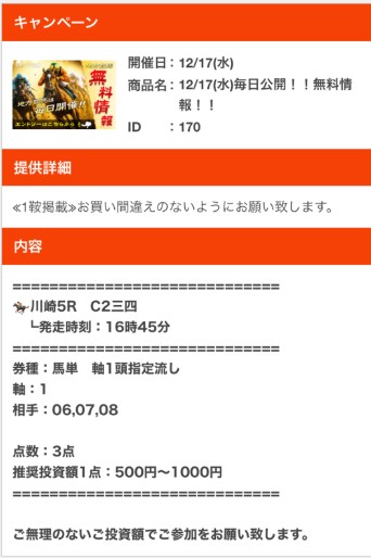 ここの口コミを見ると17日(水)は買い目点数の少点数提供サイトが結構的中を届けている印象!