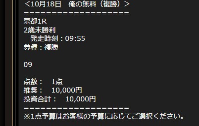 18日(土)の無料予想では買い目点数1点で見事的中!